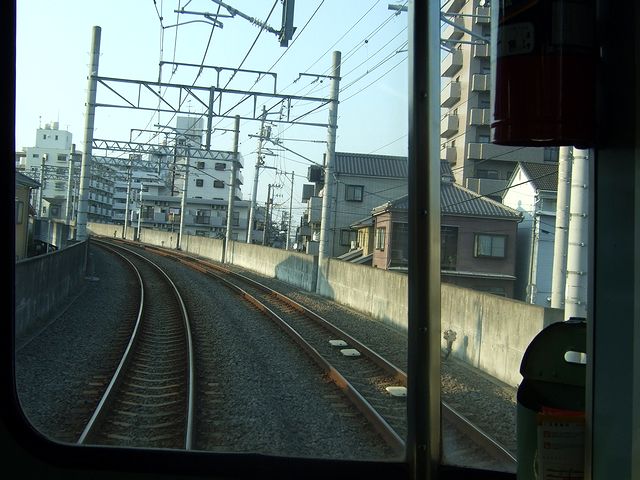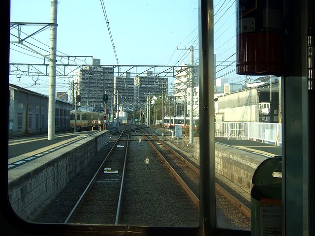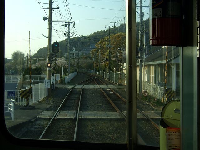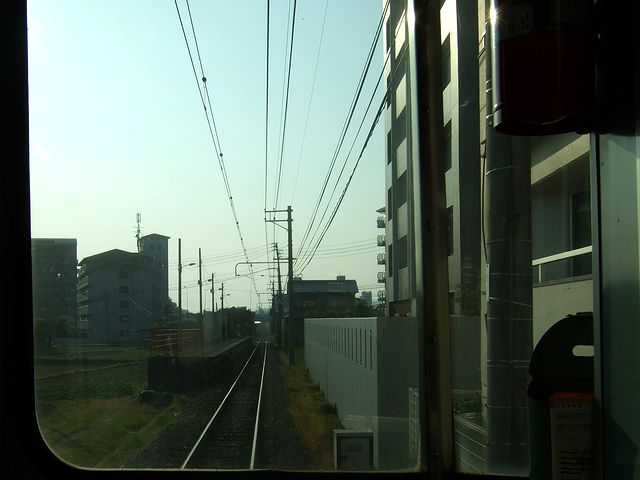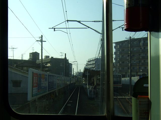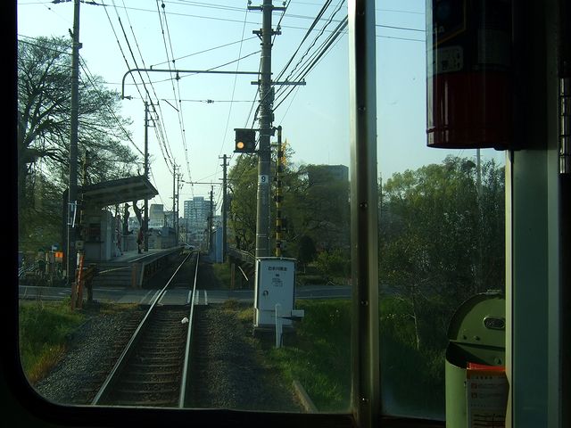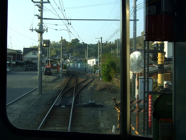 横河原駅では一度改札を出て、再び折り返しの列車に乗車。ちなみに伊予鉄道の横河原線と高浜線は直通運転を行っているので、この列車は高浜線終点の高浜駅行きとなります。それで、今度は先頭になる隣の車両ら乗車。この車両、先ほど乗ったモハ821と比べて、ドアがステンレスになっているなど若干新しい感じがします。(後で調べたところ、先程まで乗っていた隣のモハ821よりも後で製造された模様。)そして、今回は先頭車の一番前の席から前面展望を堪能したので、ページが重くなるのは承知で、その時に撮影した写真を並べてみようかな、と。