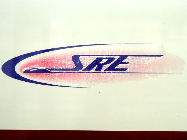 【車体側面のだいぶくたびれたSRE(スノーラビットエクスプレス)ロゴステッカー】