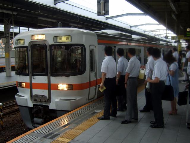 岐阜からは、通勤客に混ざって岡崎行きの普通列車に乗車。もっとも、こちらもこれから仕事に向かう事には変わりないのですが。で、この車内で多少の気持ちの切り替えが出来たというか、次に乗るのは300系。しかもグリーン車なのに勿体ないということで。