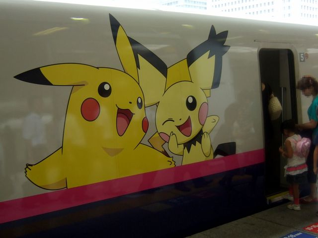 【車体にピカチュウ・ピチュウ描かれた(っていうかシート貼られた)E2系】