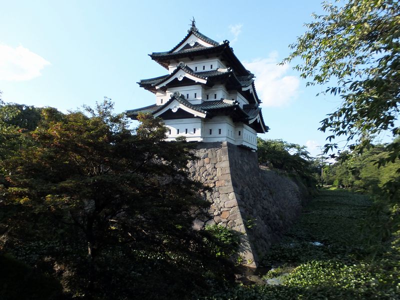 その築城ですが、元々は南部氏の支族であった大浦氏の養子となり、戦国時代の末に南部氏内部に起こった争いを機に周辺の豪族を滅ぼして津軽一帯を手中に収め、そして豊臣秀吉の小田原征伐に参陣するなどして4万5千石の所領安堵の朱印状を受け、更には関ヶ原の戦いで徳川家康に味方して戦後2千石を加増されるという、一代にして弘前藩初代藩主となった津軽(大浦)為信が、これまでの居城であった大浦城、堀越城(両方とも同じ弘前市内にあったそうです。)に替わる新たな居城として、慶長8年(1603年)に鷹岡というところに築城を開始。