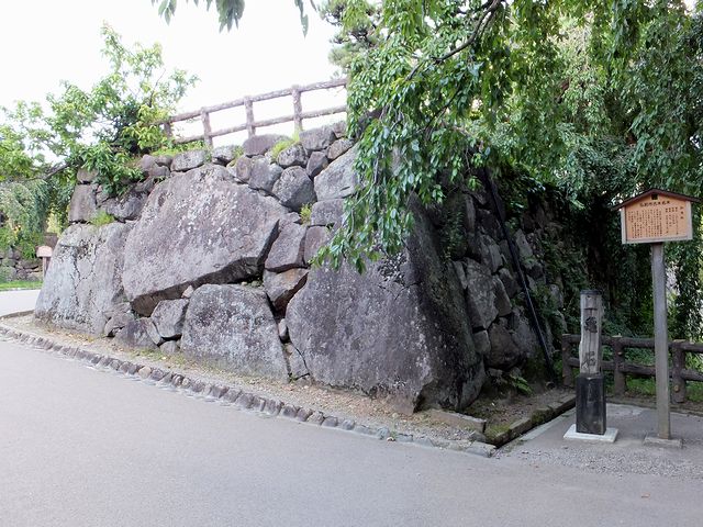 そして天守付近の本丸ですが、虎口には低い石垣が残っていて、その脇には「亀石」との看板が。ちなみにこの本丸は、本丸御殿や御武芸所や能舞台などかつては敷地の約7割に建物があったそうで。(建ぺい率すごそうですね。)