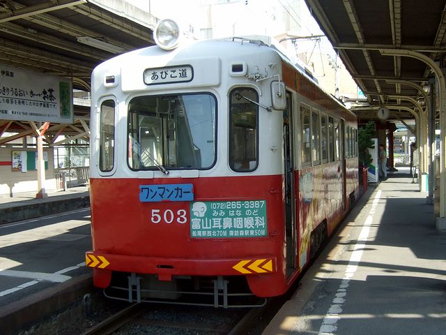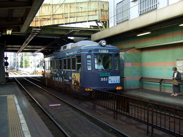 それでこの時間帯、列車はすべて途中の我孫子道停留所止まりになっていますが、その我孫子道まで行く列車は、クラシカルな外観のモ501形電車。昭和32年製ながらWN平行カルダン駆動など当時の最新鋭技術で作られた車両とのこと。