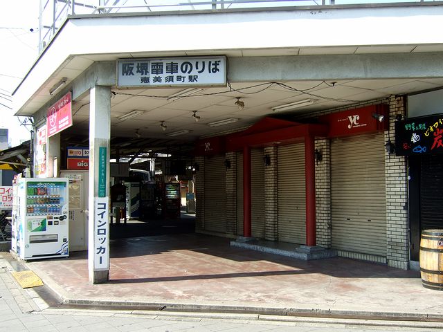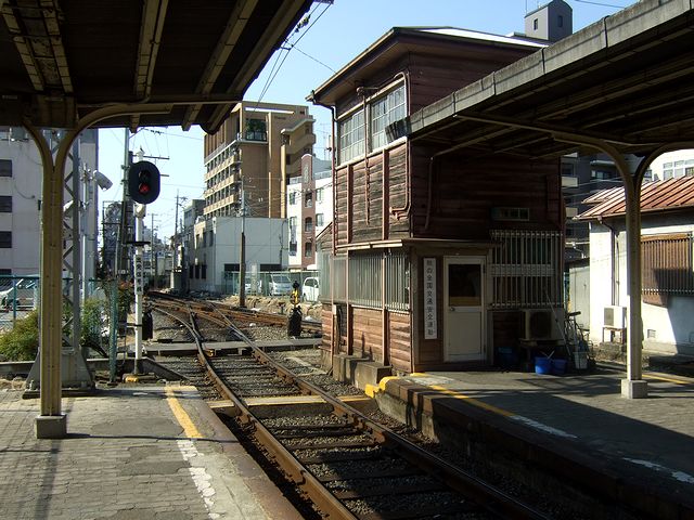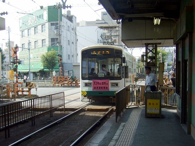 恵美須町停留所では、折り返しには乗らず、その次の列車で行くことに。木造の建物が残るなどとても雰囲気のある停留所というか駅構内には、ホームレスらしき人が所在なげに佇んでいました。