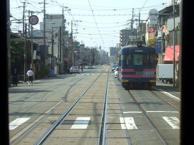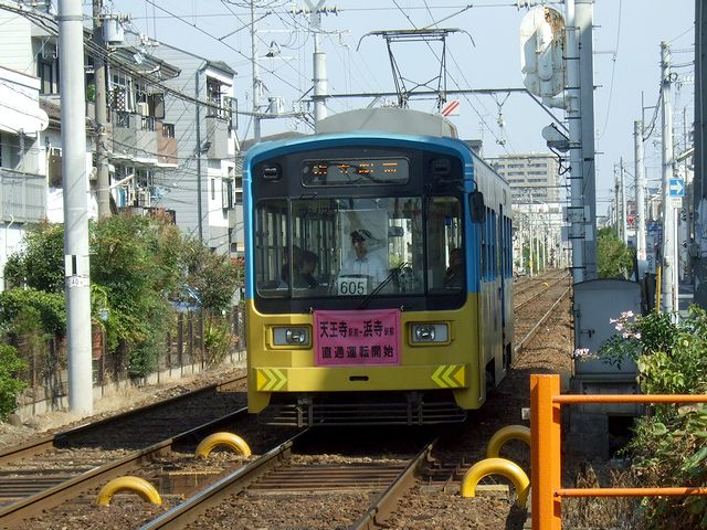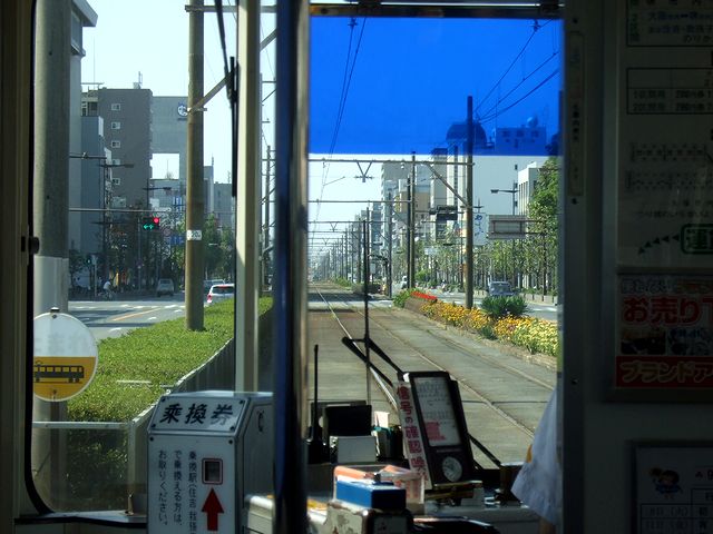 現在、阪堺電車の堺市内を走る区間の廃止が取りざたされているようで。もともと阪堺電車の堺市区間は年間2億円以上の赤字区間(ちなみに大阪市内の区間は800万円の黒字だそう。)で平成15年には廃止を含めた協議を堺市に申し入れたそう。それが、公有民営で堺市(経営予定者は阪堺と南海)が計画していたLRT事業(南海電鉄堺駅-南海電鉄堺東駅-シャープの液晶パネル新工場ができた堺浜間)の早期開業区間である堺駅-堺東駅間と一体的に低床型LRTとして整備することで生き残りを図る目算だったのが、この列車に乗った平成21年9月27日の堺市長選挙で当選した新市長によってLRT計画が全面見直し(堺駅-堺東駅間については建設中止)になり、また、支援を要請した阪堺に対して慎重な姿勢を見せたことから、再び廃止論が浮上する可能性が高まっているそうです。