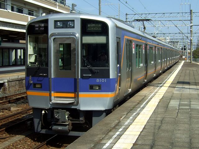 ここからは、南海とJRを乗り継いで、所用のある長居へ向かうのですが、まず始めは、南海本線でお隣の羽衣駅へ。やって来たのは新しい8000型という電車でした。
