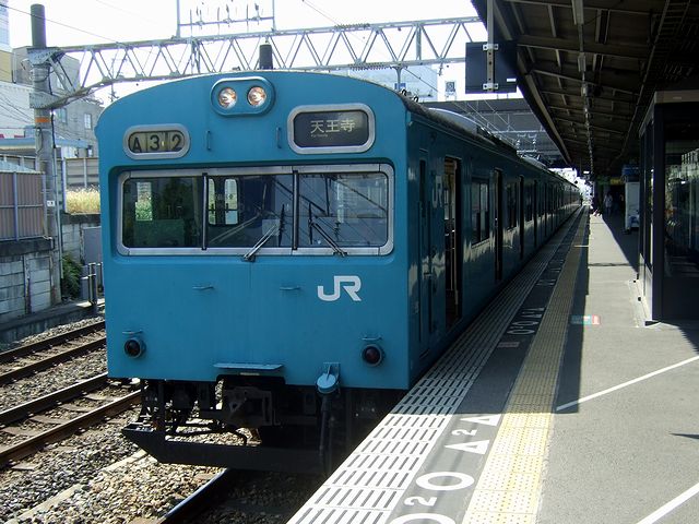 で、この阪和線ですが、個人的に思い出の路線というか、大和川を渡って大阪市に入ったところにある杉本町という駅の近くに、20年以上前にちょこっと住んでいたことがありまして。でもって、毎朝阪和線の普通列車に揺られ、阿倍野にある学校通学していた、と。当時は、この103系の普通列車に乗るのって、わりと辛かったっけなぁ。