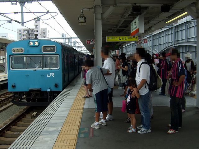 そして用足し後、再び鶴ヶ丘駅へ。それにしても、ホームも車内もサッカー帰りの乗客で大混雑です。