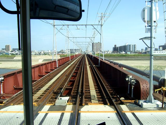 【大和川橋梁を渡って堺市へ(最後尾の窓から撮影)】