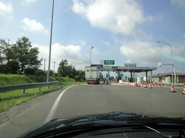 この日、午前4時に目覚ましをかけていたのですが、久しぶりの旅に興奮し、前日寝付けなかったわりに目が覚めたのは午前3時半過ぎ。そのまま着替えなどを済ませ、午前4時15分過ぎに、まずは最初の目的地である秋田県秋田市に向け出発。最寄りのICから東北道に乗り、北へ。で、旅に出るというか遠出をする度に毎回思うんですが、この高速に乗ってから最初のICまでの区間が、やたらと長く感じるんですよね。(これが、鉄道の場合は最初の一駅間になるのですが。)それが次のICその次のICと進むにつれてだんだんと感じなくなっていくと、自らが今していることが「旅」になってくるというか。そうしているうちに県境を越え、福島県へ。天気はハッキリしないというか、夜明けの頃は晴れ間も見えていたのですが、その後雨になり、曇りになり、後はそれらがランダムで繰り返すという感じで。そんな中を2時間程走って菅生PAに到着。ここで朝食とすることに。それにしても、朝の6時過ぎ、しかもお盆休みも終わったというのに、PA内は結構な混雑というか、私たちが席について程なく、スナックコーナーはほぼ満席状態になりました。