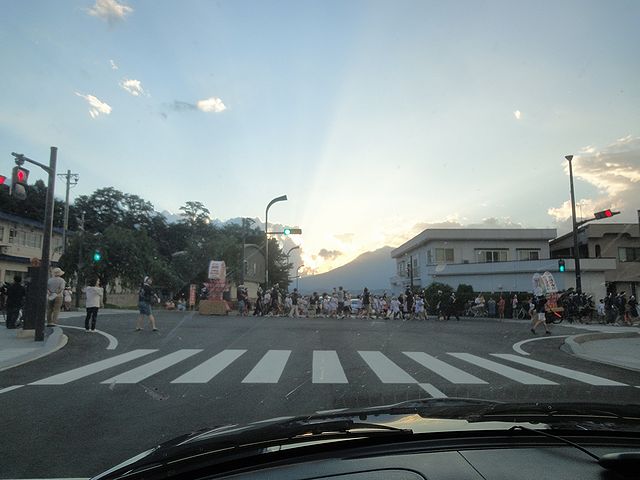 弘前城をみ終われば、とりあえず本日の観光予定は終了。後は青森(市)まで国道7号で移動し、午後10時15分発の函館行き津軽海峡フェリー23便に乗るだけ。で、午後6時頃、弘前城(前の駐車場)を出発したのですが、お城の近くでは子供ねぷたと出会いました。そして弘前市郊外のGSにてこの旅2度目の給油。途中から日が暮れた国道7号を走って青森市内に入り、フェリーに乗る前には人間も腹ごしらえということで、午後7時頃、青森フェリーターミナル近くのラーメン店へ。そこでお腹いっぱいになるまでいただき、後は途中でコンビニに寄ってからターミナルへと向かおうと思ったのですが、コンビニで買い物後クルマに乗り込んだ途端ものすごい雨に見舞われました。暫くはクルマを出せない程の降りだったのですが、その雨で一瞬にして水溜まりと化した道路を走り、ターミナルへ。