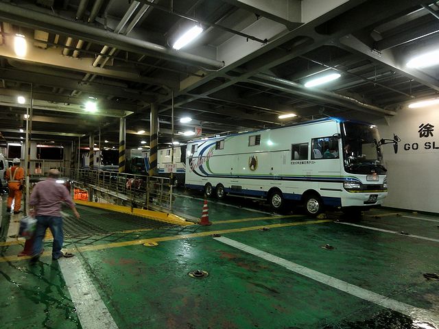 青森フェリーターミナルには、午後8時前に到着。今回は(というかクルマで青森から渡道する時は毎回ですが)津軽海峡フェリーなので、雨の中でもクルマを降りずにチェックインができる『スマートチェックイン』って本当に便利ですね。その際、通常なら津軽海峡フェリーのウェブサイトで予約確認のページ(にある3Dバーコード)を印刷したものを機械にかざすのですが、その画面をスマートフォンに表示させたものでも無事チェックインできました。(ただ単に印刷し忘れていただけなんですがね。)それであとは乗船待機列にクルマを停め、午後9時30分の乗船開始を待つばかりだったのですが、ここでチェックイン済にもかかわらずターミナルの中へ。実は今回予約しているフェリーの船室は、少しでも仮眠しやすいようにと2等(桟敷席)より(定価で)2,300円高いファースト(2人部屋)にしていたのですが、更にそこから(定価で)1,000円高いスイート(こちらも当然2人部屋)に変更しようかと。それでターミナルにて確認したところ、スイートに空室があり、無事(追加料金を払って)変更できることに。で、何故そんなことをしたかというと、ファーストには無いシャワーが、スイートには付いているんですよね。この日は幸い天気に恵まれたのですが、おかげで全身汗まみれのベトベトで、かなり洒落にならない状態になっていました。なので、それが流せて気持ちよくベッドに入れれば、ちょっとくらい高くても全然問題ないというか。やがて午後9時過ぎ、折り返しとなる18便のブルードルフィン(船名です)が入港。船内から馬運車が何台か降りてくるのを見てテンションが。(馬運車見ると何故か不思議とテンション上がるんですよね。)そして9時半の少し前、こちらの乗船が始まったのですが、最初に馬運車が何台か入っていったのを見て、更にテンションが。その後少しして、こちらも乗船。車両甲板にクルマを停め、案内所でスイートの鍵を受け取り船室へ入ったのですが、これがまた豪華というか、乗船時間がたかだか4時間弱だと勿体ないくらいのお部屋。すぐさまシャワーを浴びてベッドに潜り込んだのですが、神経が昂ぶってなかなか寝付くことができませんでした。