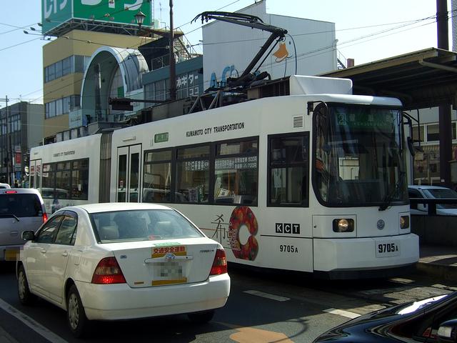 上熊本電停を発車した列車は滑るように走るのですが、それがこの車両のせいか、はたまた、上熊本電停の移設に伴って日本で初めて施工(平成14年)された、軌道を樹脂で固定し騒音と振動を軽減するインファンド工法のせいかはわからないんですが。