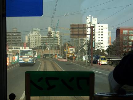 やがて辛島町からは、本日初めて乗る区間。また市街地中心から外れていく気配がして、九州新幹線の乗り入れに合わせ改修中のJRの熊本駅って、ちょっと街外れにあるんですよね。その熊本駅前電停で、私ともう1人を残して乗客は全て下車。