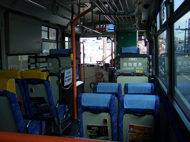 熊本駅前からは、リムジンバスで熊本空港(愛称:阿蘇くまもと空港)へ。やってきたのは路線バスのようだけど車内にはちゃんと大型の荷物置き場がある車両。てっきり、観光バスタイプの車両だと思っていたのでちょっとびっくりしました。