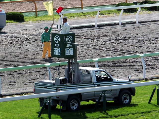 こちらも施設設備とは違いますが、ついでに。そういえば、競馬場に来る度に必ず撮影する発走委員がスタート前に白い旗振っているところ、撮り忘れたなぁ。