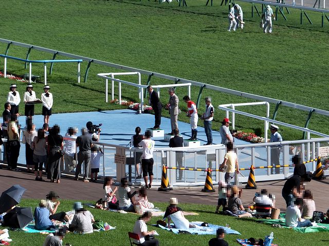 前の記事に書いたとおり、今回はこちらの指定席で。事前によく調べていなかったのですが、オープンエアだったんですね。で、競馬場の向こうには津軽海峡が。なんか、荒尾競馬場を思い出しちゃったというか。ちなみに、観戦中一時驟雨に見舞われましたが、最前列にもかかわらず濡れずに済みました。(ただし、風がある時はわかりませんが。)