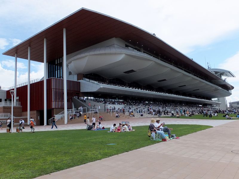 平成22年の改修に合わせて全面改築されたメインスタンドは、JRAの競馬場の中ではかなりコンパクトな感じ。