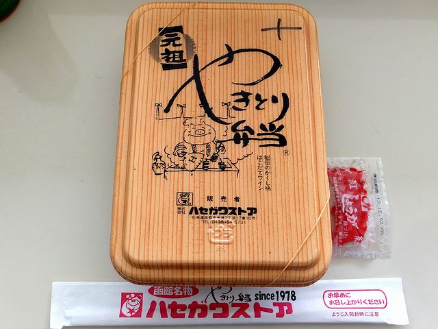 こちらは、屋外(風の広場)の移動店舗。ハセガワストアは、函館市を中心に展開するローカルなコンビニチェーンで、そこで売っているのが函館名物にあげる方も多いやきとり弁当。ちなみに「やきとり」と言っても、お肉は豚肉。実は、豚肉を焼き鳥のように串に刺して焼いた物を「焼き鳥」と言う地域って結構有ったりするのですが、函館もそのようで。