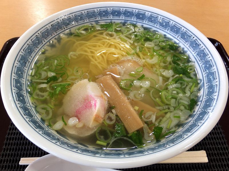透明なスープは、あっさりながらもコクがあり、またダシの素材の香りだけではない、どこかスパイシーな風味も感じられる結構広がりのある味というか。細めの麺は、若干硬質な食感ですが、それほど主張は強くなくどちらかというと中庸という感じで。またチャーシューはバラ肉で、ほんの少しだけワイルドな風味も。それとお麩が当地の塩ラーメンっぽいですね。というわけで、万人向けというか尖りすぎず、だけれども適度に個性もあって、「なるほど」という感じのお味だったというか。