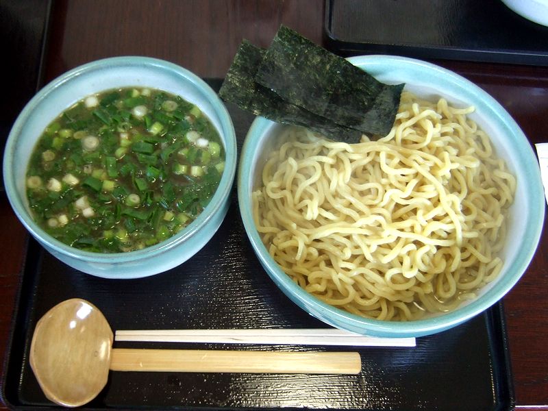 で、いただいたのは、京都九条ねぎつけそば。つけ汁は、以前いただいた時と同じく、脂分を直接感じないさらっとした(と言ってもコクは十分にありますが)豚骨ベースに感じました。味付けは甘みが効いていて、たっぷりと入れられた九条ネギが豚骨のアクというか尖った部分を上手く纏めてくれているというか。また麺は、つけ汁と絡みやすい太縮れ麺。注文したのが暖かい麺ということでお湯に浸かっていましたが、モチモチっとした食感は十分に感じられる美味しい麺だと思いました。それと具はつけ汁の中に入っているのですが、小間切れのチャーシューやメンマの他、ワカメが珍しいですね。そして最後は、スープ割りまで堪能。さすがに大盛(麺375g)だと、お腹いっぱいになります。