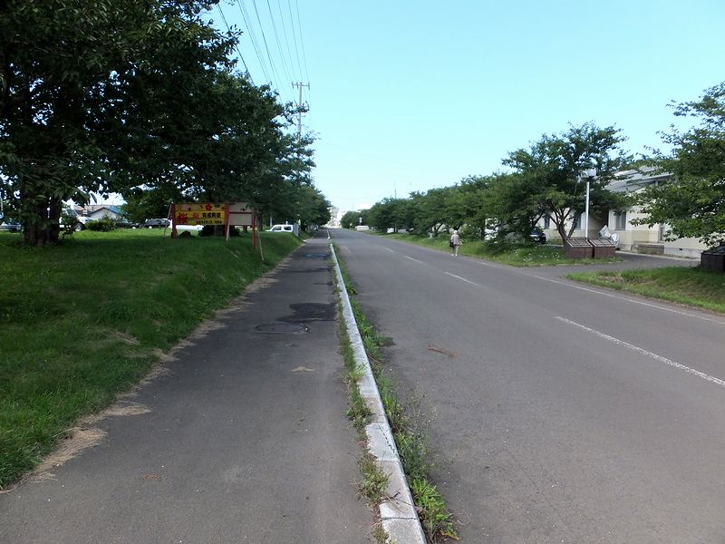 かつて松前町には、JR(国鉄)松前線という鉄道路線が営業していたのですが、国鉄再建法により廃止対象の第2次特定地方交通線に指定され、とうとう昭和63年に廃止になってしまいました。個人的にも、確か昭和62年の正月あたり乗りに来た覚えがあるのですが、冒頭で「むむむ!」と思ったのはその松前線の痕跡というか、ここはひょっとして廃線跡じゃ?と思ったからでして。ちなみに、かつて線路だった道路には、カーブが緩やかだったり、道路に対して間口を設けている建物が少なかったり、道路の両側に段差があるなどいくつか特徴があると思っているのですが、まさしく、ここはそんな感じ。