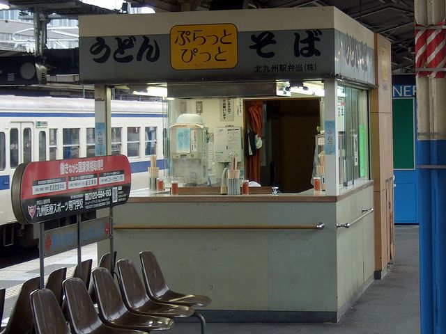で、小倉駅に着いた後は、ホームの立ち食いスタンドの名前に軽いショックを受けつつも、そことは別のスタンドで、うどんの朝食をいただいたり、日田彦山線に行くキハ47の写真を撮ったり。
