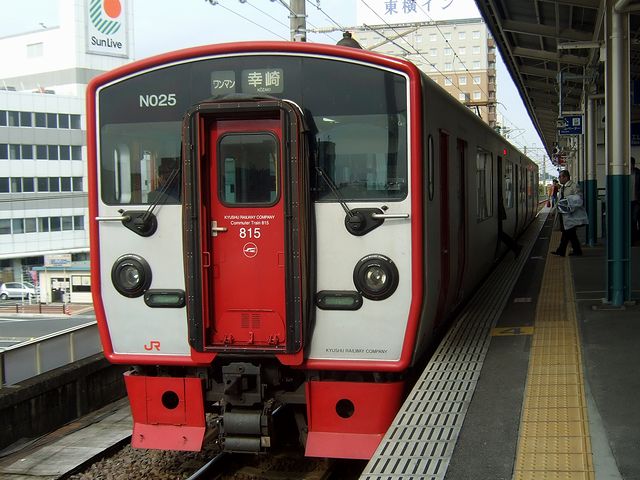 中津からは、815系2両編成の幸崎行きワンマン普通列車に乗り換え。で、残念ながらこの815系。車内はロングシートで、車窓を眺めるには適していないんですよね。