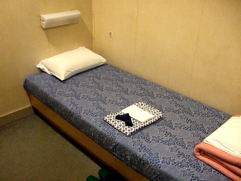で、今回乗船したこのフェリー。ちょっと奮発しての1人用の個室(でも、一番安いグレード。インターネット割引で10,240円也。)を予約していたのですが、これが思いの外良かったというか。ベッドは多少狭いですが、洗面台やテレビもあるし、そして何より、混雑している船内と壁で隔離されるところが。夜行の高速バスと同じような値段ですが、快適さにおいては全く比較になりませんね。