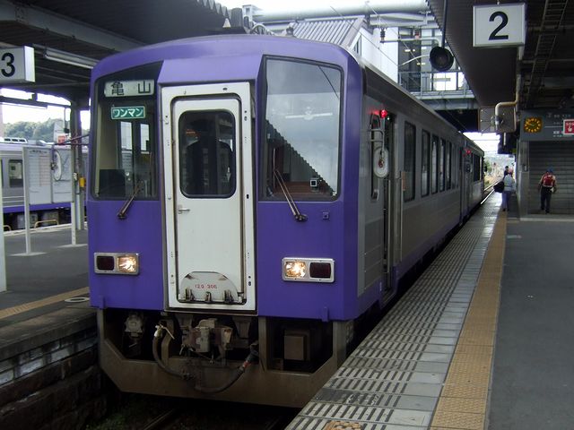 加茂で、亀山までの非電化区間を走るキハ120形ディーゼルカーのワンマン普通列車に乗り換え。実は、加茂まで乗ってきた快速が予定より1本早かったお陰でボックス席の窓側をゲットできたのですが、発車時刻になる頃には小型の車体で2両編成の車内は結構混んできましたので、逆に予定通りだったら座るのも苦労したかと。
