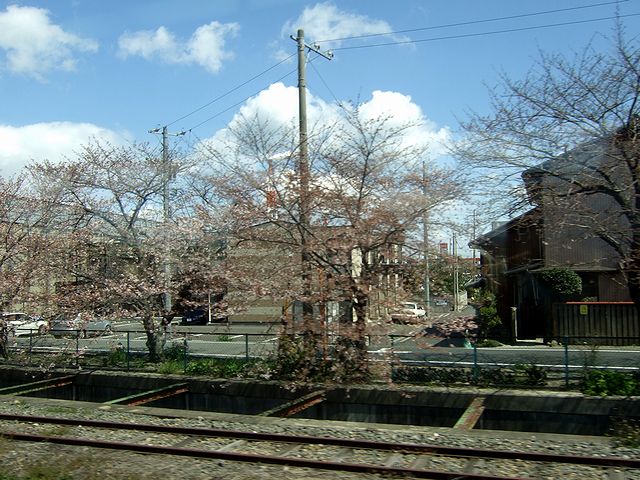 列車は定刻に発車し、駅ごとに乗客が増え、途中から立ち客も出る混雑。で、この区間、個人的には乗ると何故かいつも眠ってしまうのですが、今日は何とか(腹がくちくなっていても)耐え、何本も大きな川を渡る車窓を見ることが。で、先程の加太越えでは早春に戻った市風景も、いつしか桜が咲く春へと戻っていました。