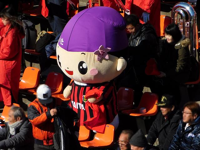 バックスタンドからは、試合開始前から両校の応援が聞こえ、高校サッカー選手権ならではの雰囲気。特に、矢板中央側で観ていたこともあり、矢板中央の名物応援歌である「矢板の男」が良く聞こえてきました。また、応援する矢板中央のサッカー部員からちょっとだけ離れたところには、矢板中央の地元、栃木県矢板市のマスコットであるともなりくんが激しく応援していました。