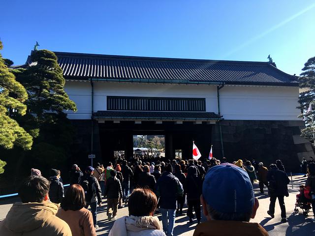 待機スペースで待つこと暫し。予定では、午前9時30分に開門となるはずだったのですが、午前9時前、待機している人達に動きが。先頭?で待機していた一団が皇居正門に向かって移動開始。予想を上回る人出だったようで開門時刻が午前9時15分に早められました。その後、待機していた人達も番号順に順次正門に向かって案内され、我々の待っていた4番のスペースも、午前9時20分過ぎに移動開始に。で、この後、天皇皇后両陛下と皇族の皆様がお出ましになられる宮殿までの間は、立ち止まっての撮影は不可(ちなみに、撮影自体は禁止されていないようですが、自撮り棒や脚立、三脚を使っての撮影や、営利目的の撮影は明確に禁止されています。)の為、歩きながらスマホで画面も見ずに撮った写真のみとなります。