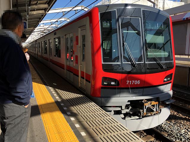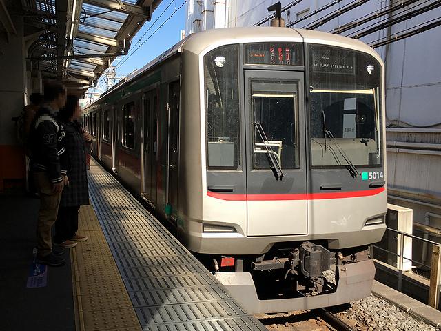 いただくものもいただいたので、あとはひたすら東武鉄道に乗っていくのですが、次に向かうは、前述のとおり曳舟駅から出ている亀戸線。ですがラーメンを食べた後、上り線ホームに移動して最初にやって来るのが東急田園都市線直通の中央林間行き急行列車だったので、亀戸線に乗る前にちょっと寄り道を。というのも、東京メトロ半蔵門線が押上駅まで開業したのは平成15年(2003年)なのですが、それに合わせて東武鉄道も曳舟駅から押上駅の区間を開業させ、半蔵門線と田園都市線との相互乗り入れが開始されました。で、その東武鉄道で建設した曳舟駅から押上駅の区間なのですが、建設にあたって建前上は伊勢崎線曳舟駅-業平橋駅(現:東京スカイツリー駅)の線路増設(複々線化)工事とし、押上駅は業平橋駅と同一駅扱いとしたため、その区間は○○線といった名称は付いていないのですが、実際には別ルートを走っているため、今回、ついでに乗ってしまおうと思っていました。
