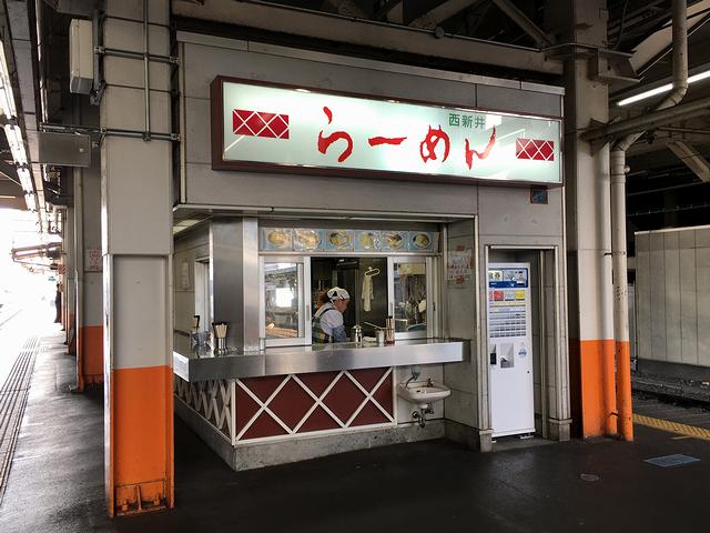 次は、曳舟駅から出ている亀戸線に乗る予定なのですが、その前に西新井駅の伊勢崎線下りホームにある、立ち食いラーメンを。個人的には東武鉄道って、立ち食いそば店よりも立ち食いラーメン店の方をよく知っていたという。それで今回は、ここか春日部駅にある立ち食いラーメンのどちらかをいただこうと思っていたのですが、腹具合的にいけそうだったのと、今回いただかなかった方のお店に将来お伺いする事を考えると比較的行き易いのは春日部駅、ということで。