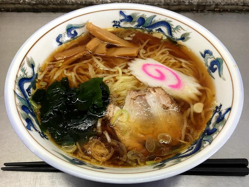 そんな中いただいたのは、最もシンプルなラーメン。で、食券提出後、お姉さん2人でテキパキと作ってあっという間に完成。早速スープからいってみたところ、丼に注ぐ際に見た時はやや黄金色がかった出汁は、鶏ガラベースでしょうか?旨味はそれほど効かされていませんが、しっかりと効かされた醤油ダレと相まって、何とも懐かしい「中華そば」っぽい味わいが良いですね。また麺は、手揉みされたようなウェーブがかった細めの物で、コリっとした歯応えを残す固めの茹で加減がまた。そして具のチャーシューは、昔っぽいラーメンにありがちなクセの強いものでは無く、これならチャーシュー麺でも美味しくいただけそう。あとメンマもプレーンというか、発酵風味の強くない食べやすいタイプのものでした。