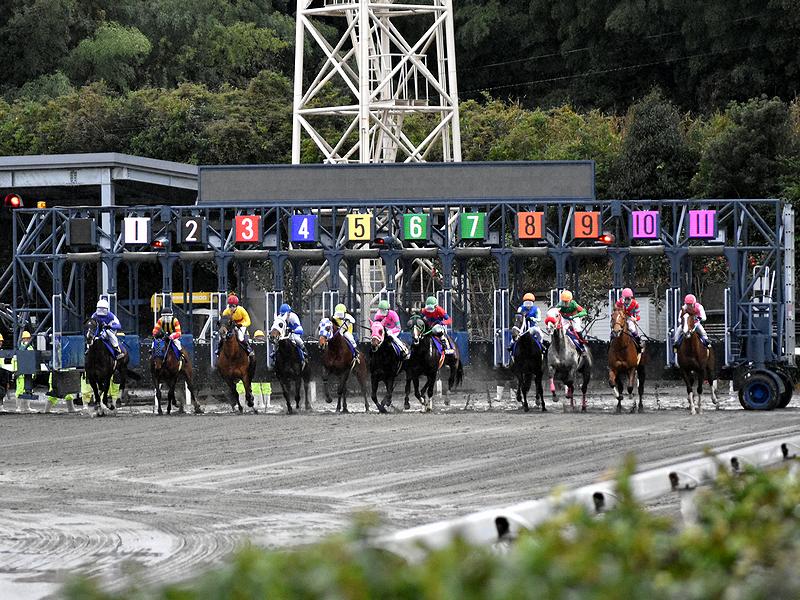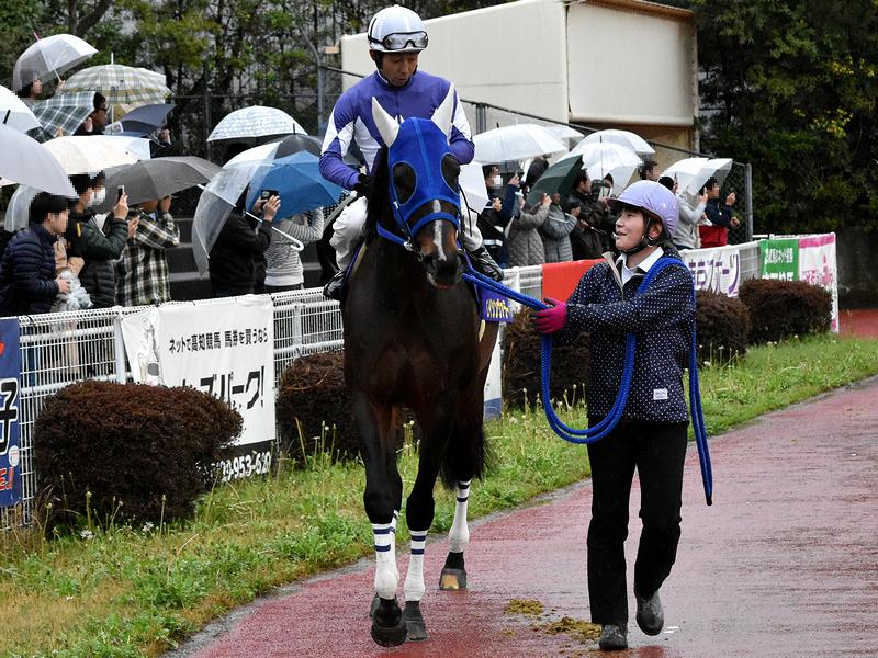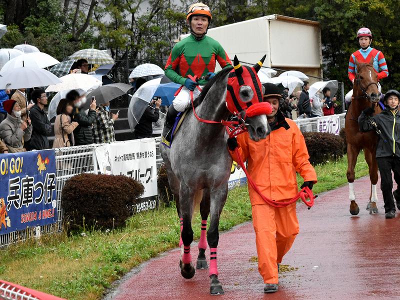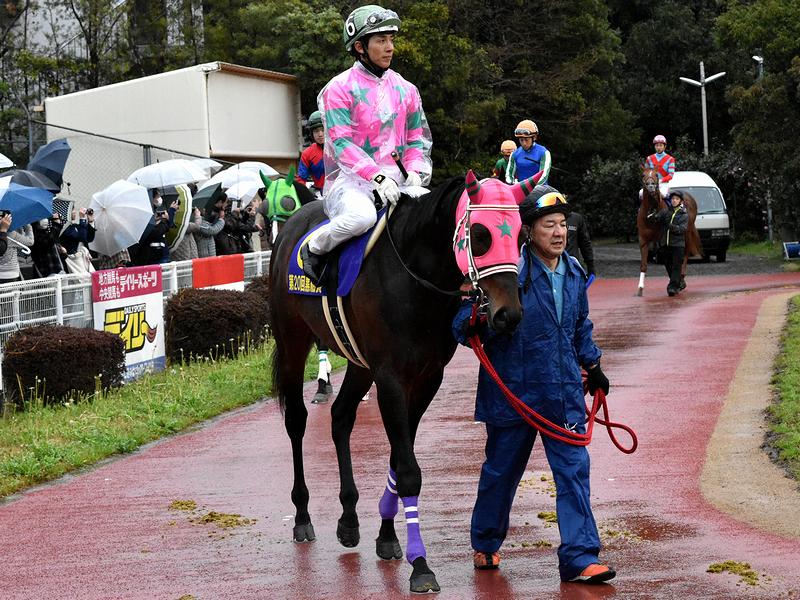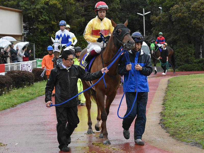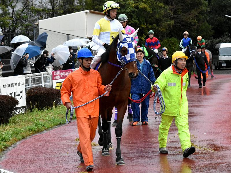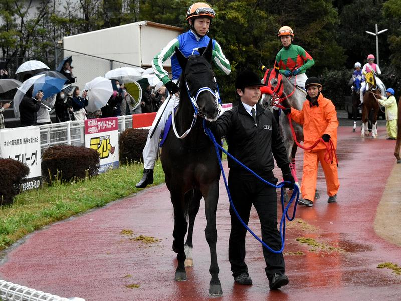 で、雨が降り続く中パドックでの周回が始まった黒船賞はこの日の第5レース。今回は11頭立てて争われます。