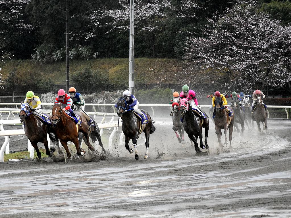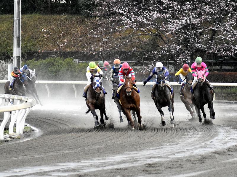 今年最初にソメイヨシノの開花宣言が出た高知だけあって、競馬場の周囲の桜が満開でした。