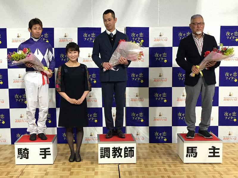 【10番人気の(2)サトノキングリー号(高知)と倉兼育康騎手(高知)】