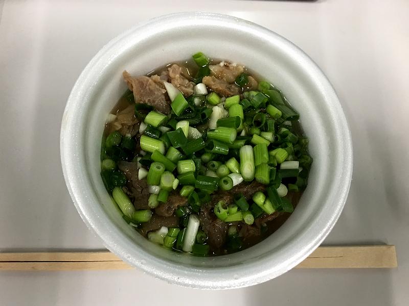 こちらは、前回お伺いした時もいただいた品ですが、前回は店頭の表記が「煮込み」となっていたところ、今回は「すじ煮込み」となっていて、更には「まっことうまいぜよ」というキャッチコピーまで添えられていました。で、前回いただいた時に驚いた、煮込んだ牛スジ肉の上におでんの鍋からツユを掛け、細かく切ったネギとニンニクを散らすという提供方法ですが、今回はわり遅い時間にいただいたため、早い時間にいただいた前回スッキリ感じたおでんのツユの味が、煮込まれた濃縮感のあるものに変わってところが違っていたかと。でも、こっちはこっちで悪くなかったです。
