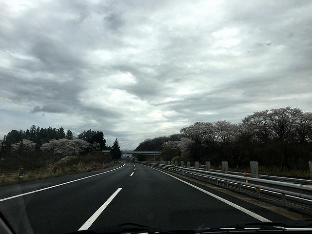 【桜が満開の東北自動車道を北上】