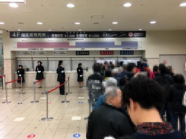 更に、指定席発売窓口への集合及び整理券確認時刻が午前8時15分、指定席発売開始が午前8時30分、指定席エリア入場開始が午前8時35分と、以前とは全く違うスケジュールになっていたこと。お陰で入場後、ファストフードプラザの花月寿さんで朝食の蕎麦をいただいたら程なくして集合、そして発売開始という感じでしたが、以前のように、整理券貰ってから発売開始まで場内でのんびりすることができなくなってしまったものの、このスケジュールの方が、早く席に行けるので良いですね。(もっとも、今回は早く入場してのんびりしようと思っていたので、当てが外れたことにはなるのですが。)