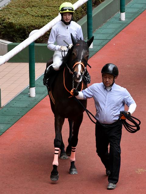 【15番人気の(9)コパノディール号と藤田菜七子騎手】