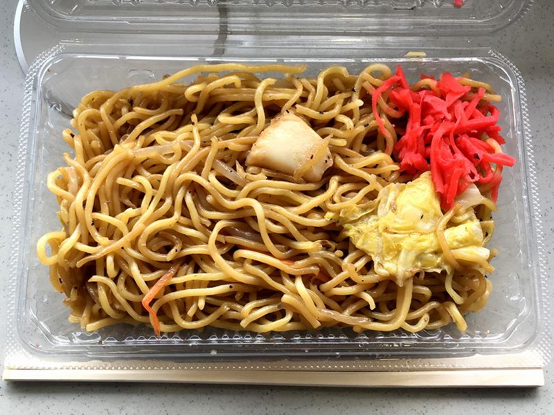 こちらは、私が遅い昼食にいただいた品。味付けが一般的なソース味とは違うことと、具がキャベツやモヤシ、ニンジンの他、イカとアサリ(そして豚肉なし)ということが、「上海」たる所以でしょうか?で、これはこれで悪くなかったです。