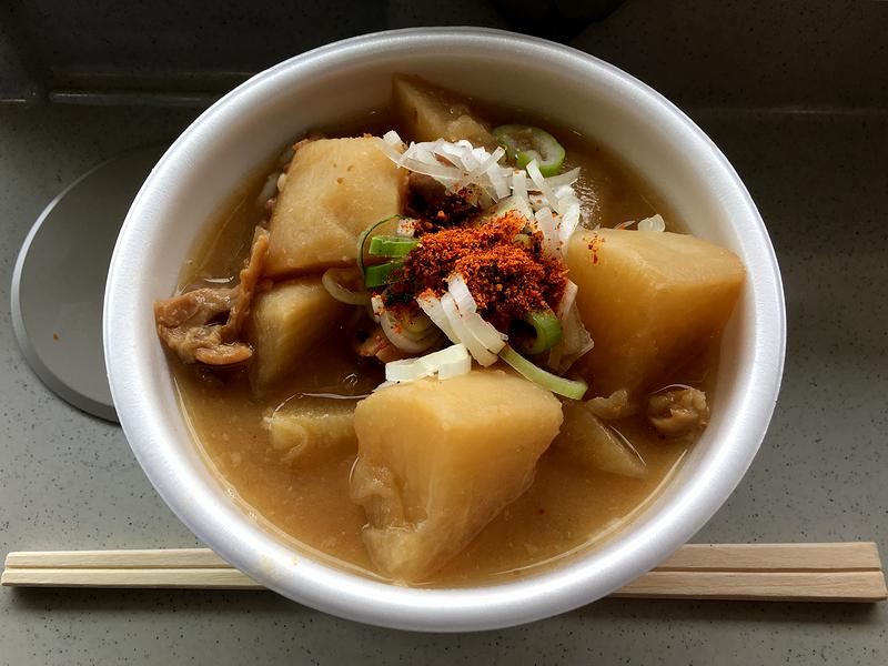 なので今回は必ずいただこうと心に決めていたのですが、甘くない味噌仕立てにトロトロの豚モツが、やっぱり旨いよなぁ、と。あと今回のも、写真の通り大根がドドンと載っていますが、これにモツの味が染み染みで、これがまた。やっぱりこれは、福島競馬場グルメの、偉大なるスタンダードですね。
