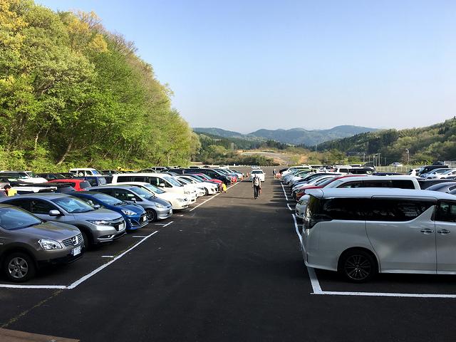 もっとも、確か一般来場者は第2ゲートから車ごと入れないので、そのまま進んだところにある駐車場へ。ここでちょっと驚いたのは、メインゲートから近い駐車場(と、そこから見える他の駐車場)が、アスファルトで綺麗に舗装されていたこと。昔は確か土の駐車場で、雨が降ると滑りやすかったんですよね。