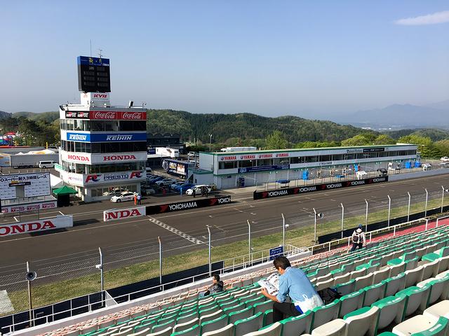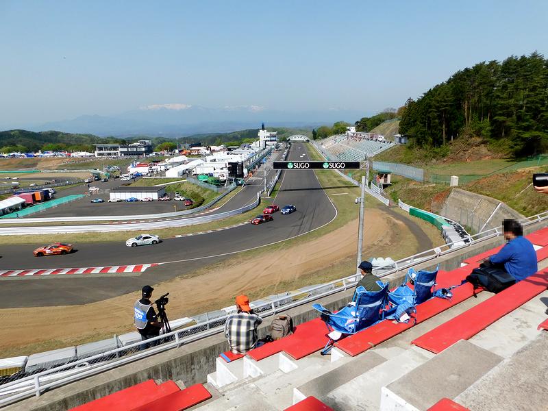 こちらは、途中でちょっとだけ移動した1コーナースタンドからの眺め。グランドスタンドと1コーナースタンドは、直接通路で行き来できるのですが、途中にトラップがあったというか、グランドスタンドを出たところに滑りやすい箇所があって、結構な人達がコケてました。あと、正面に見える「SUGO SUGO」の黒い看板って、昔から有りましたっけ?(後で調べたら、2016年に出来たらしい。)これが、1コーナースタンドはおろか、グランドスタンドからも、スタンドの高い位置から見た時に、わりと視界に入ってくると言うか。(正直なところ、申し訳ないけどちょっと邪魔だなぁ、と。)