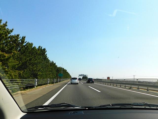 そんな中、カーナビ代わりのスマホアプリの指示により、仙台南インターチェンジから仙台南部道路へと入り、仙台若林ジャンクションから仙台東部道路へと。このあたり、仙台の市街地中心部を迂回するように進むのですが、途中、地下鉄の車両基地があったり、高圧線の鉄塔が密集している箇所があったりと、個人的には興味をそそられる風景が出現して面白いというか。