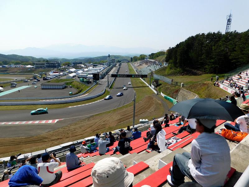 前述のとおりかなり寝不足だったのですが、相変わらず頭が妙に冴えているのは継続中だったので、私の運転で出発。石巻河南インターチェンジから三陸自動車道へ乗り、昨日通ったルートを反対になぞって東北自動車道へ。そして、別記事に書いたとおり菅生パーキングエリアで朝食をいただいた後、村田インターチェンジで高速を降り、県道などを通って菅生の駐車場まで。それにしても私自身、モータースポーツを観にサーキットに来るのは十数年ぶりとなります。