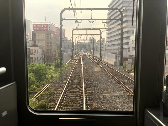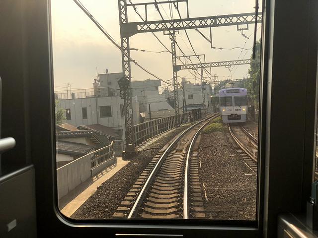 池ノ上駅を過ぎるとこの2つ先の新代田駅直前まで1km以上にわたって直線区間が続きますが、線路にアップダウンがあるのであまり実感が。そしてビルが見え街に来たなと思ったら、後で戻ってくることになる下北沢駅に到着。それにしても、渋谷駅を出てからこっち、駅間距離が短いというか、発車して加速するとすぐに次の駅という感じで。で、その後も基本的に住宅地の中を走るのですが、車内は、渋谷駅発車時から結構な混雑が続きます。そして、以前ライブハウスに行く為に2度ほど降りた新代田駅や、京王本線から乗り換えたついでに京王電鉄グループがやっている立ち食いそばをいただいた明大前駅など馴染みのある駅が現れた後、これも以前ラーメンをいただく為に降りた永福町駅に到着。ここで4分停車し、後続の急行列車に抜かれます。